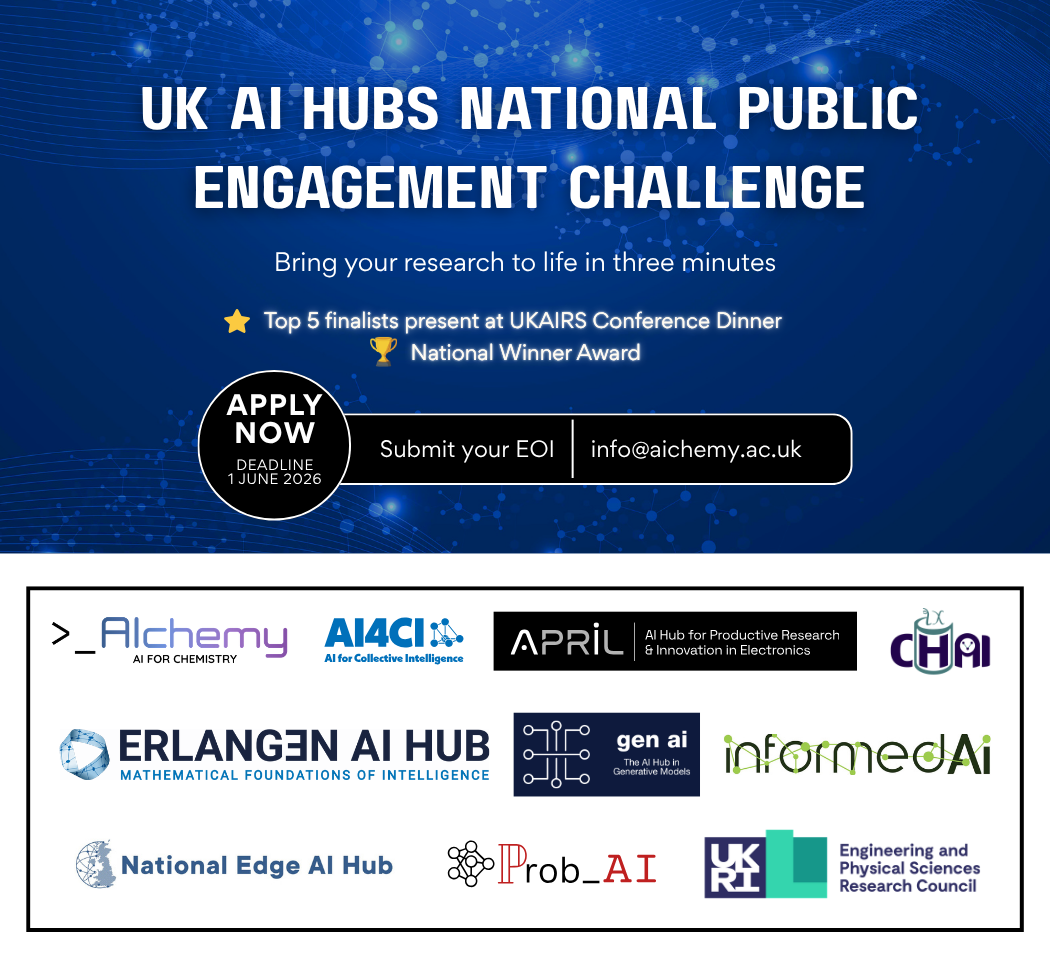 KEY DETAILS STAGE ONE:EOI Deadline 01 JUNE 2026STAGE TWO:Training & Video Development (July–September)STAGE THREE:Grand Final at UKAIRS (24–25 November) Description The UKRI AI…