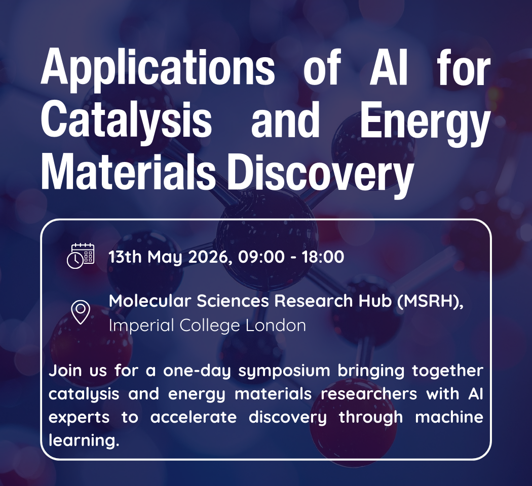 Join us for a one-day symposium bringing together researchers working in catalysis and energy materials with AI experts developing and applying machine learning methods in this space.