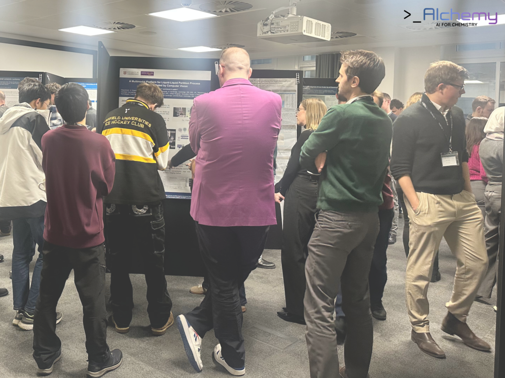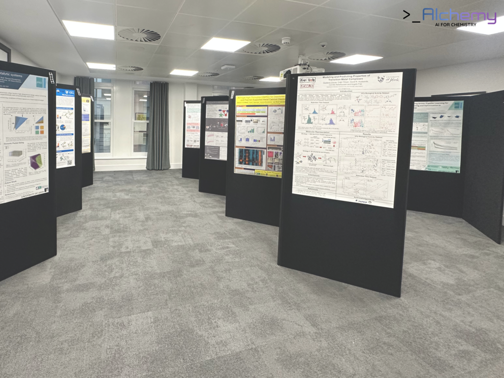 A lunchtime poster session provided space for deeper discussion and peer-to-peer exchange. The room buzzed with conversations as delegates shared early-stage ideas, methodologies, and challenges, reinforcing the event’s aim of fostering a supportive community for researchers at the start of their AI & Chemistry journey.