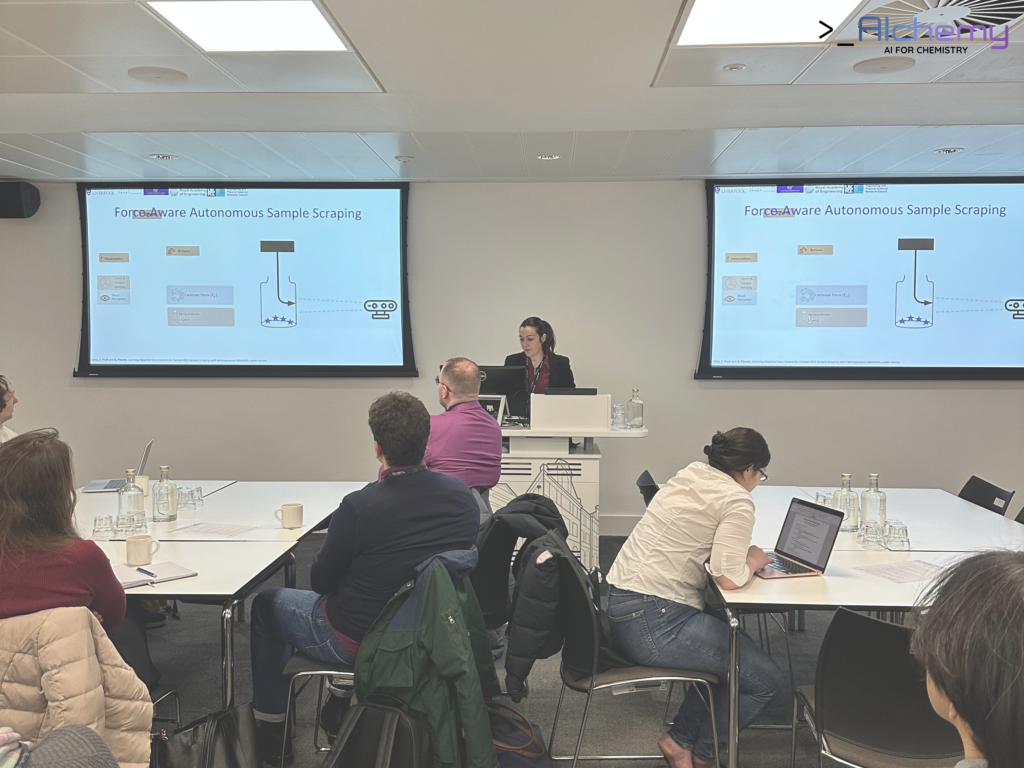 The morning keynote was delivered by Dr Gabriella Pizzuto (University of Liverpool), who offered a compelling roboticist’s perspective on Embodied AI for next-generation robotic chemists. Her talk explored how physical embodiment, perception, and intelligent control can enable robotic systems to move beyond automation towards genuinely adaptive chemical experimentation.