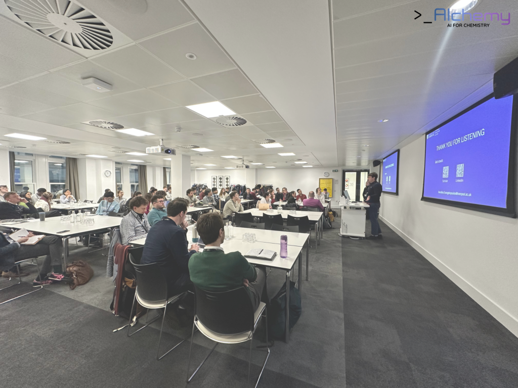The morning session continued with Dr Xenofon Evangelopoulos (University of Liverpool), who presented work on knowledge-guided Bayesian optimisation as a powerful approach to accelerating chemical discovery. By combining domain expertise with probabilistic models, this method offers a route to more efficient exploration of complex chemical spaces.