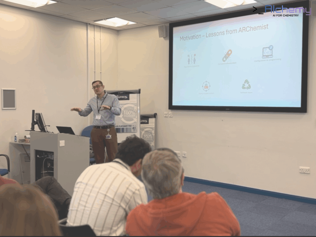 Morning Talk & Live Demo: We kicked off with a presentation covering the motivation behind OCHRA. We looked at the challenges in software for SDLs and surveyed the existing landscape of both commercial and academic frameworks. This was followed by a detailed look at OCHRA’s architecture. The highlight of the morning was a live demo of the framework in action, running a full synthesis bot workflow. This involved a KUKA KMR-iiwa mobile robot, a Chemspeed I-Synth platform, and a Waters HPLC working together seamlessly, all orchestrated by OCHRA. We even walked through the key parts of the code that made it all happen.